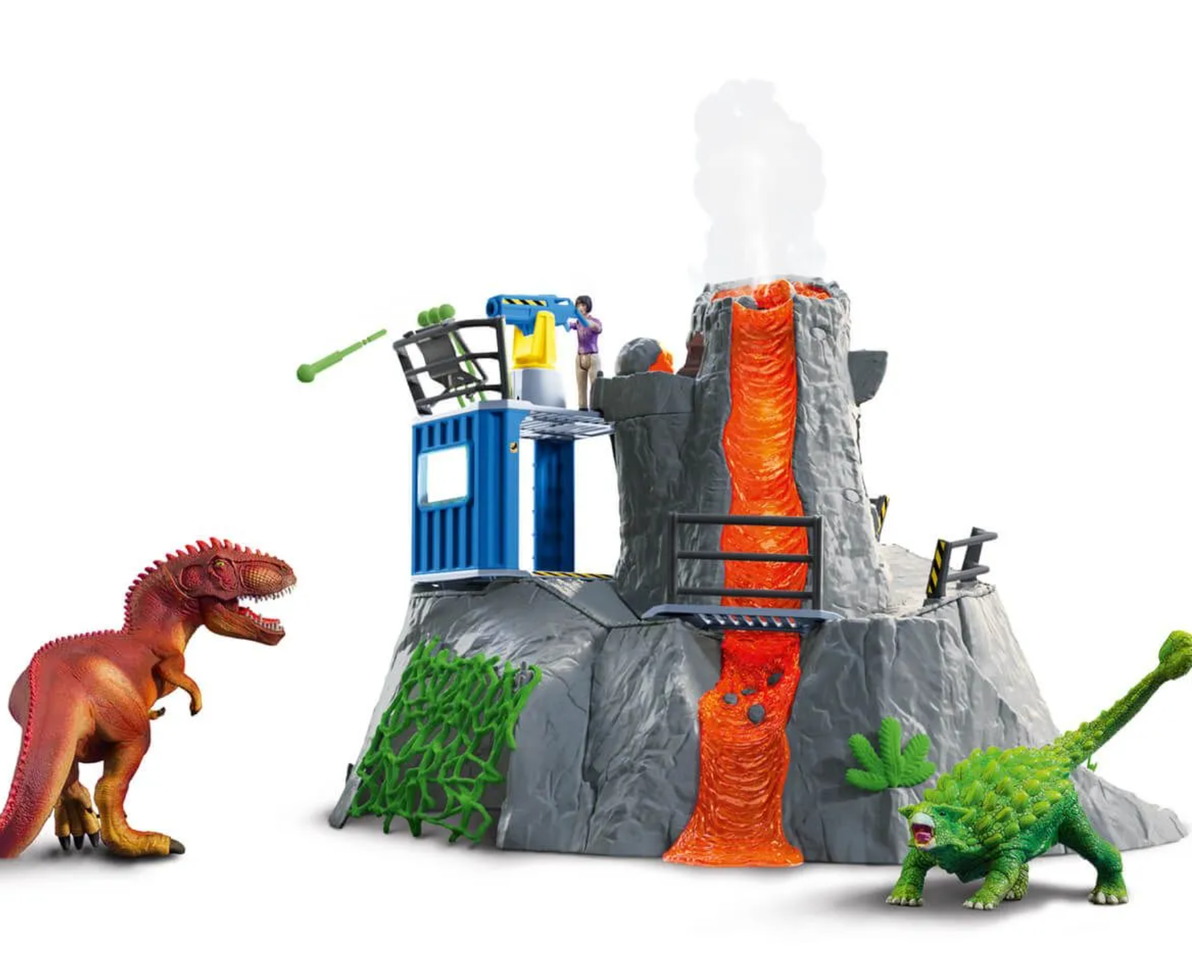 Das Highlight der schleich® DINOSAURS Welt: Die große Vulkan Expedition bietet überraschende und actionreiche Spielfunktionen wie leuchtende Lava, eine coole Rauch - und Ausbruchsfunktion mit Vibrationseffekt oder gefährlichen Dino Sound auf Knopfdruck! Für endlosen Spielspaß in der Welt der DINOSAURS!