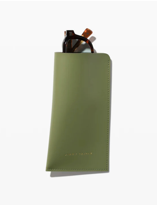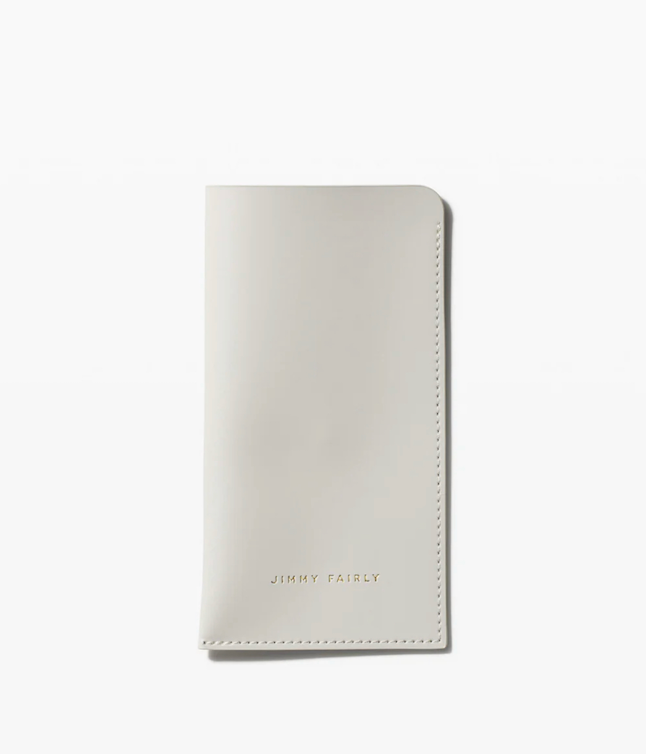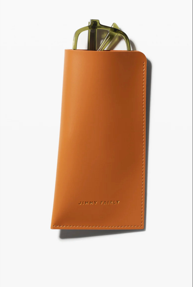Embossed leather sunglasses case with Jimmy Fairly logo.