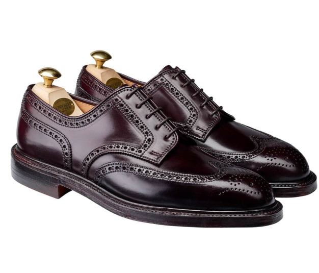 Pembroke, our classic full brogue country-style derby shoe with wing tip design and punching detail. Made from Horween's burgundy shell cordovan with double leather soles and a storm welt for added waterproof protection. From the Men's Shell Cordovan Collection.